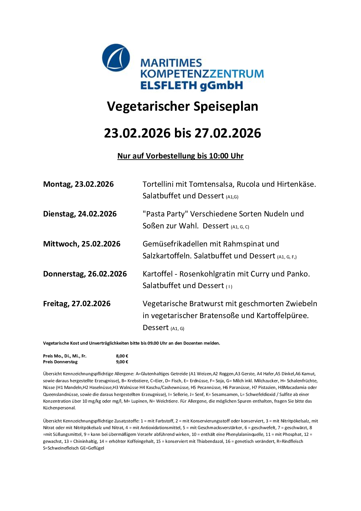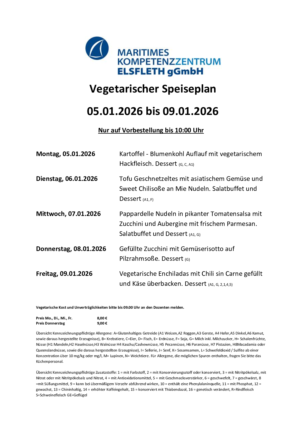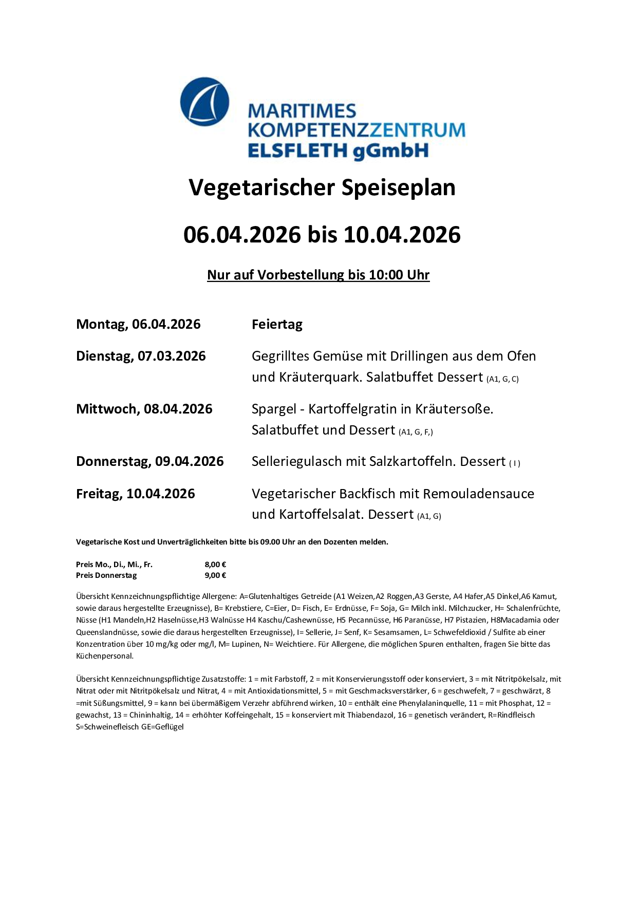 Preis Mo., Di., Mi., Fr. 8,00 €